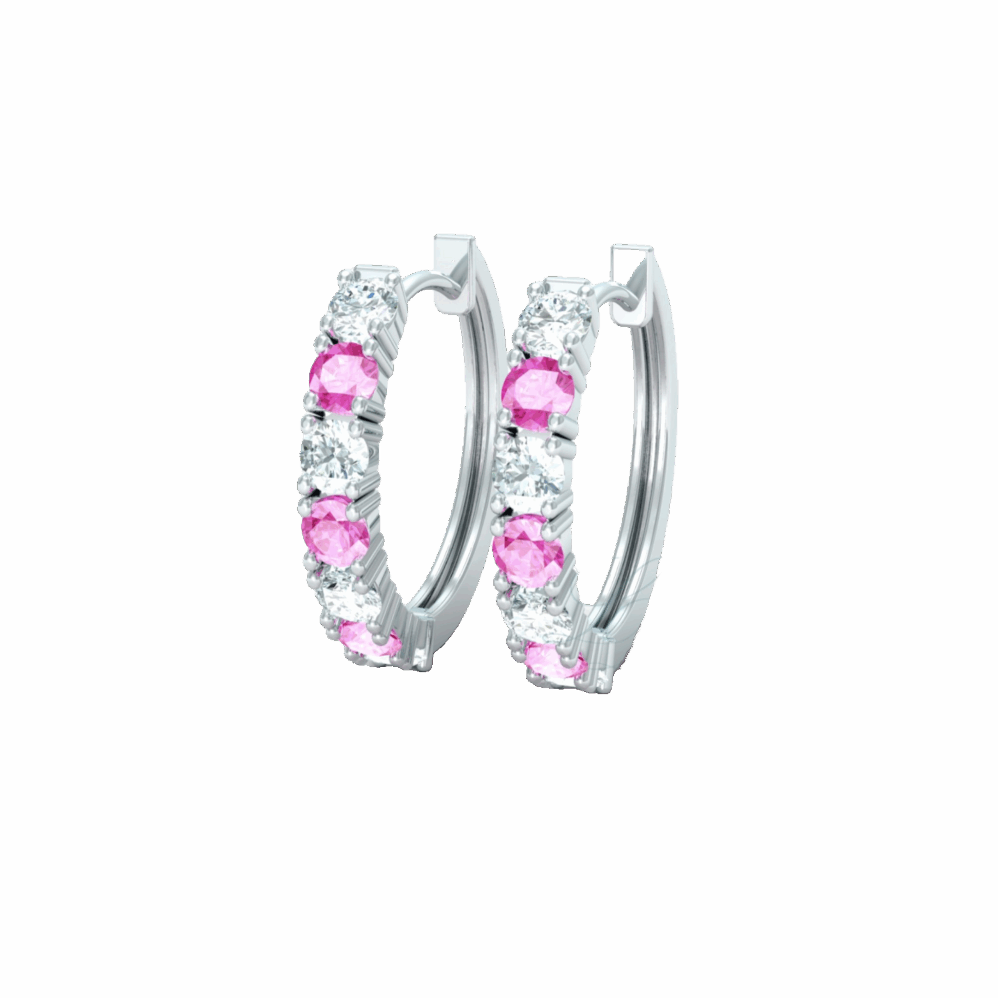 Náušnice ze 14 Kt bílého zlata s růžovými safíry a přírodními diamanty. | |