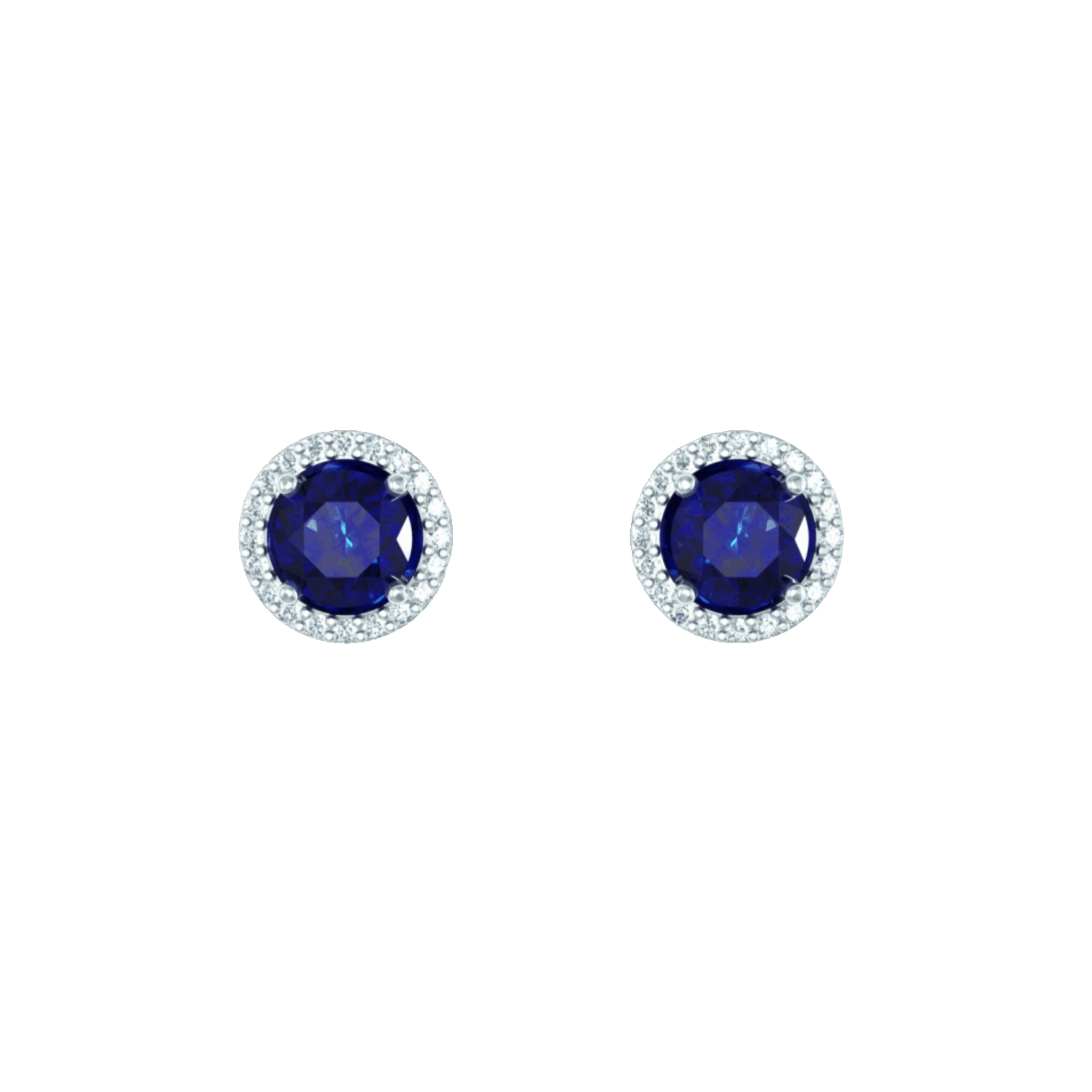 Náušnice ze 14 Kt bílého zlata s modrými safíry a přírodními diamanty.