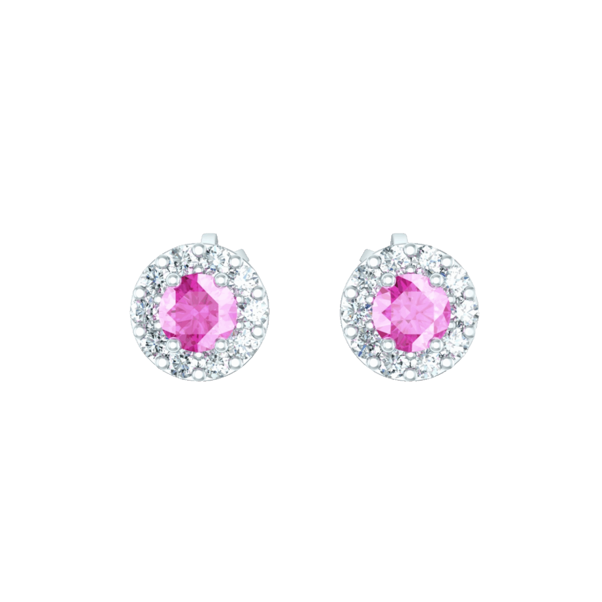 Náušnice ze 14 Kt bílého zlata s růžovými safíry a přírodními diamanty. | |