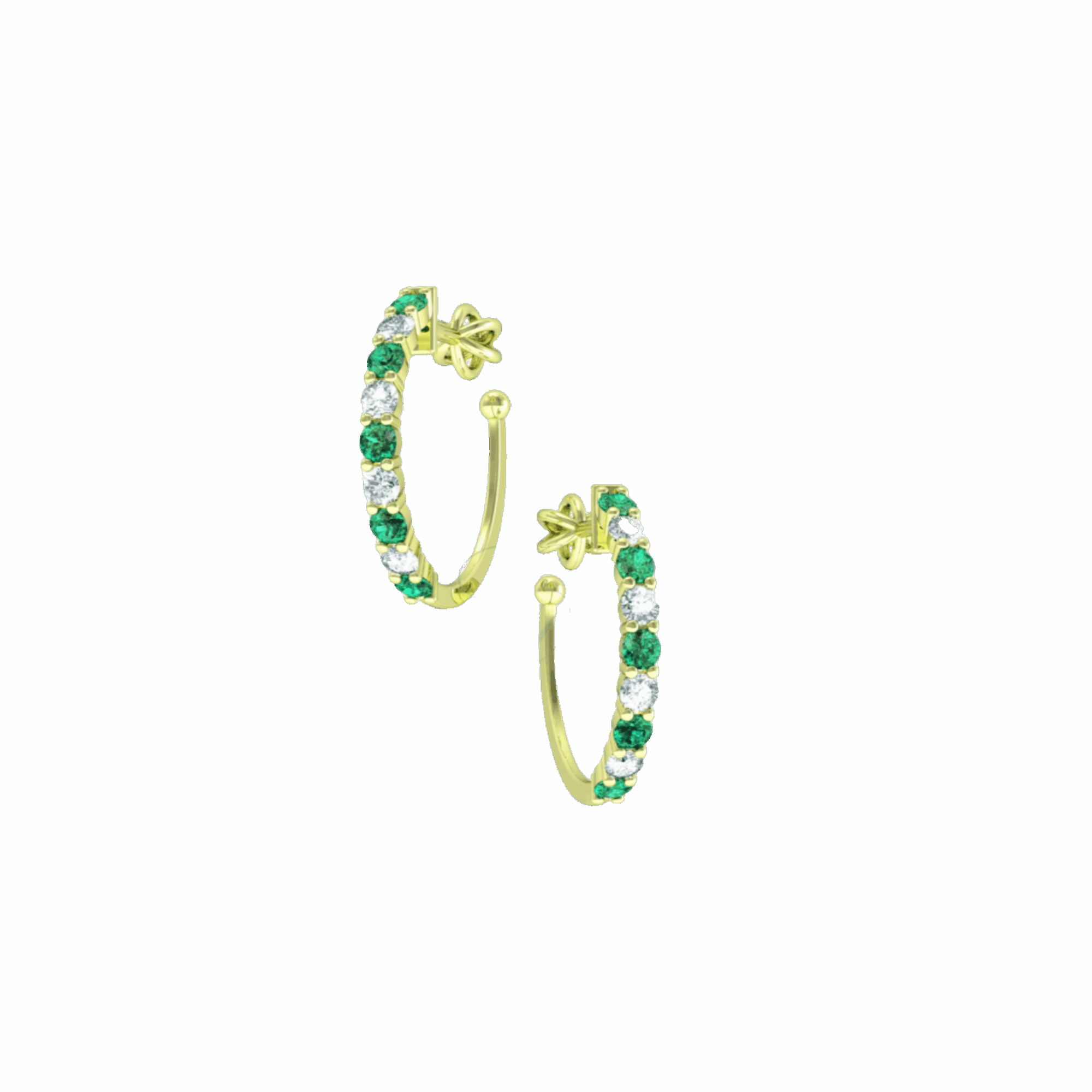 Náušnice ze 14 Kt žlutého zlata se smaragdy a přírodními diamanty. | |