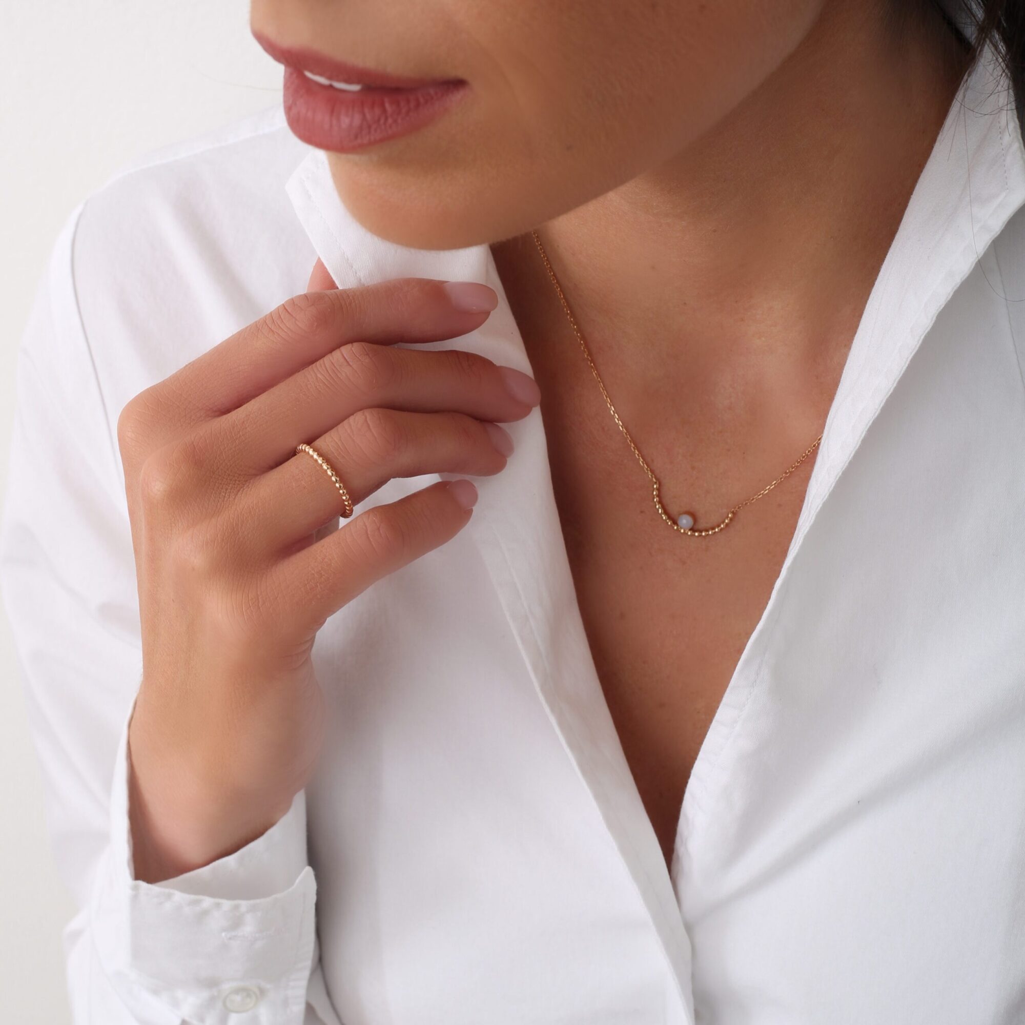 Prsten z kuličkového 14 Kt růžového zlata je vhodný ke kombinaci s dalšími prsteny kolekce Bubbles. |