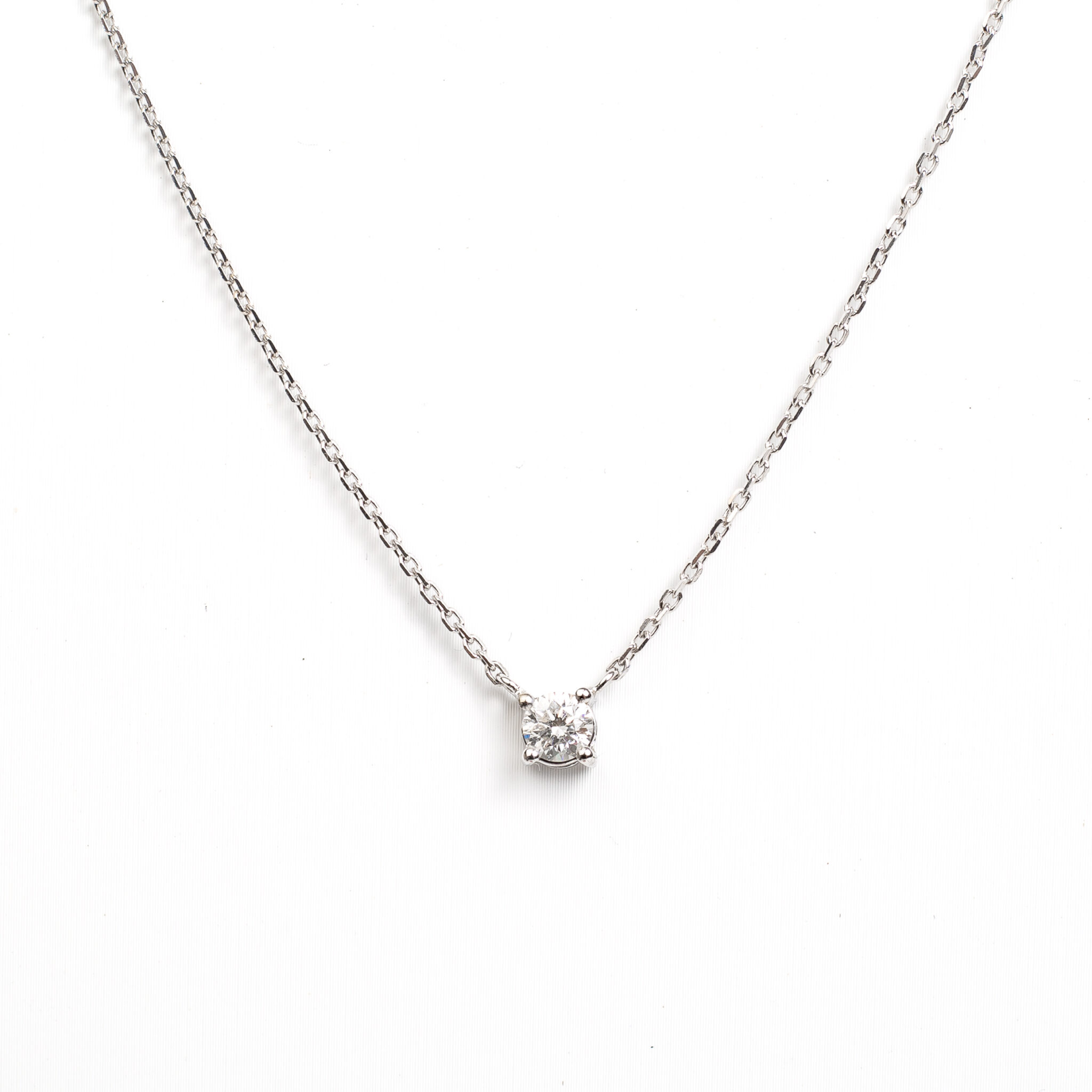 Náhrdelník ze 14 Kt bílého zlata s přírodním diamantem. Cena šperku je včetně řetízku v délce do 50 cm. Požadovanou délku řetízku v cm nám napište do poznámky v objednávce. |
