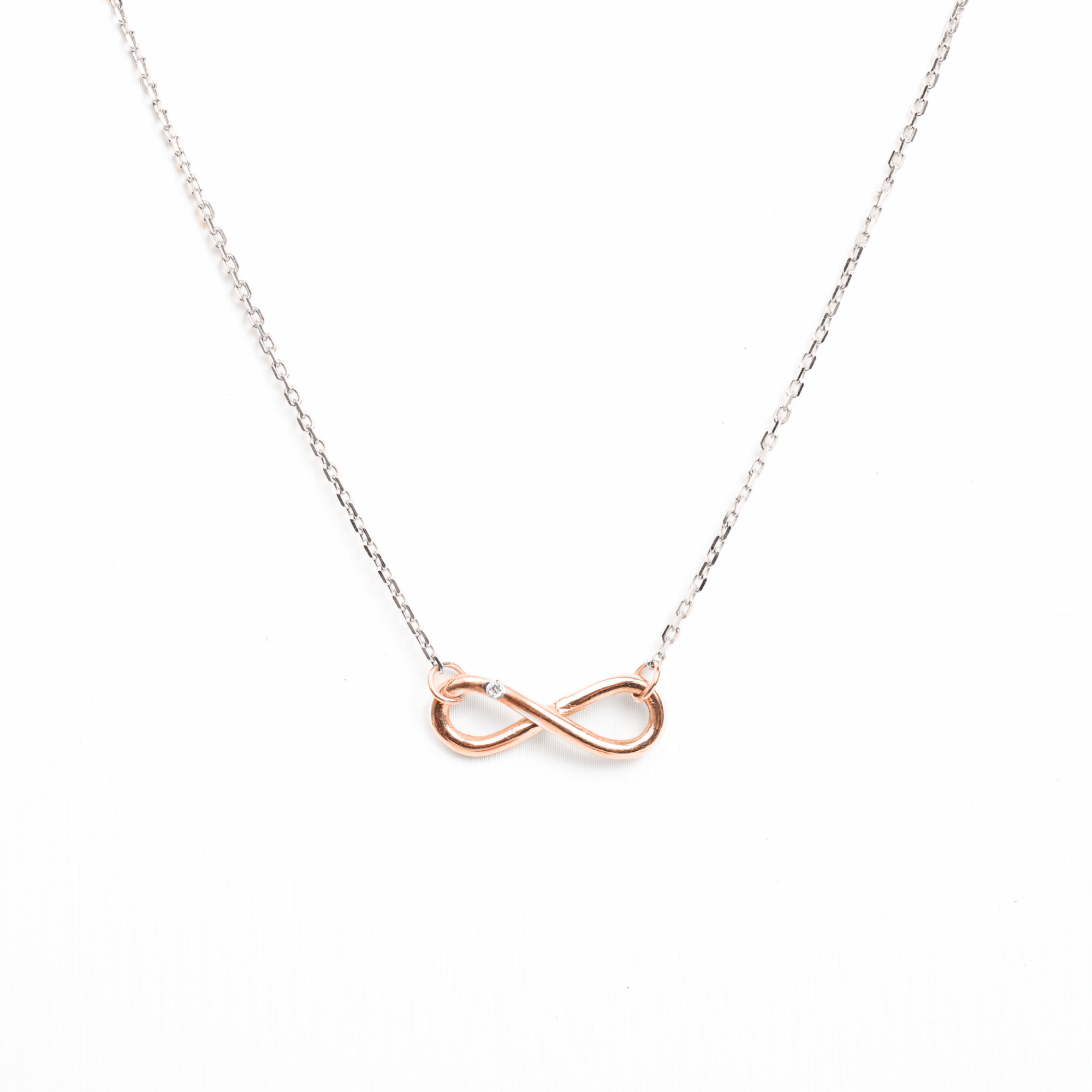 Náhrdelník Infinity – růžové a bílé zlato, diamant