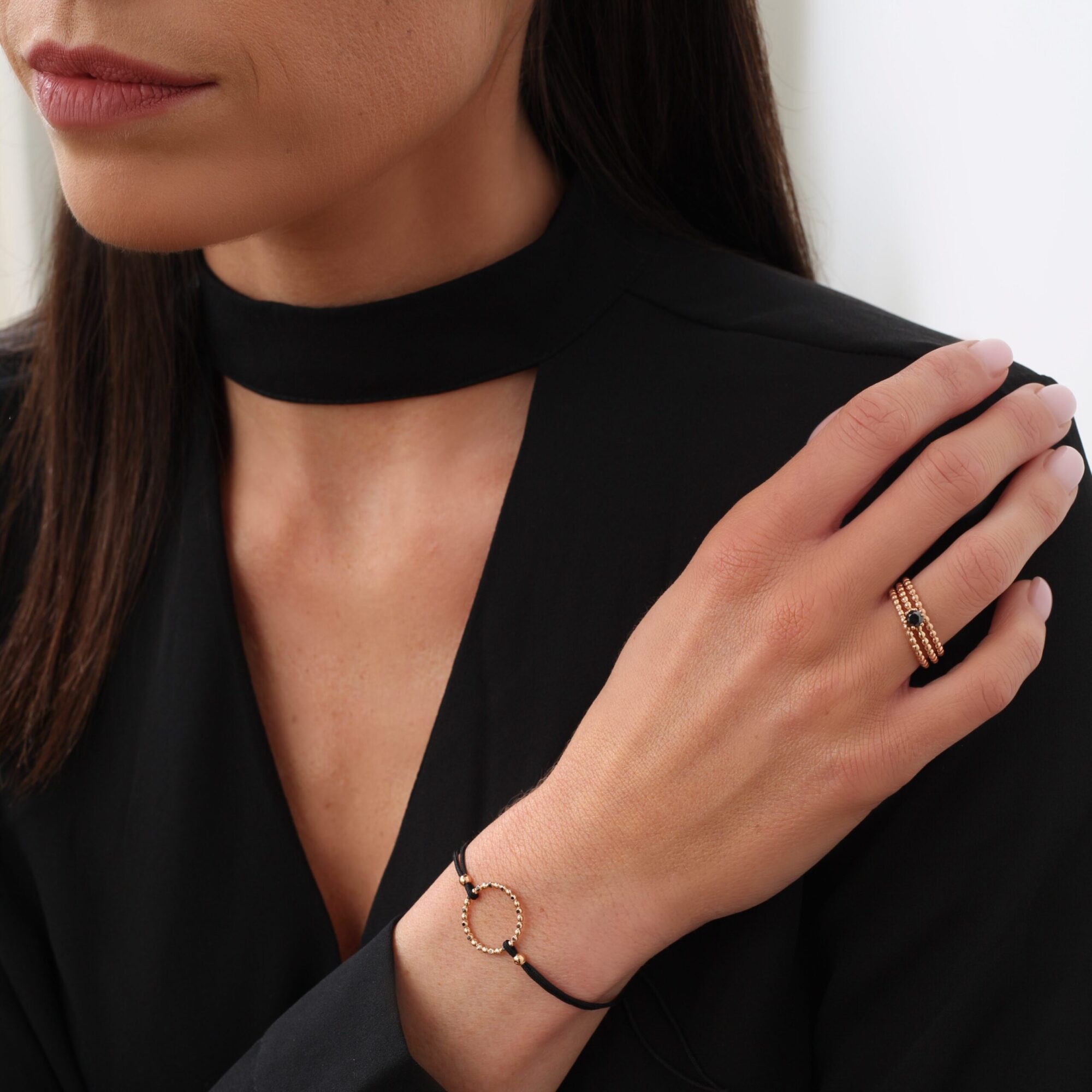 Náramek Karma – růžové zlato, černý diamant