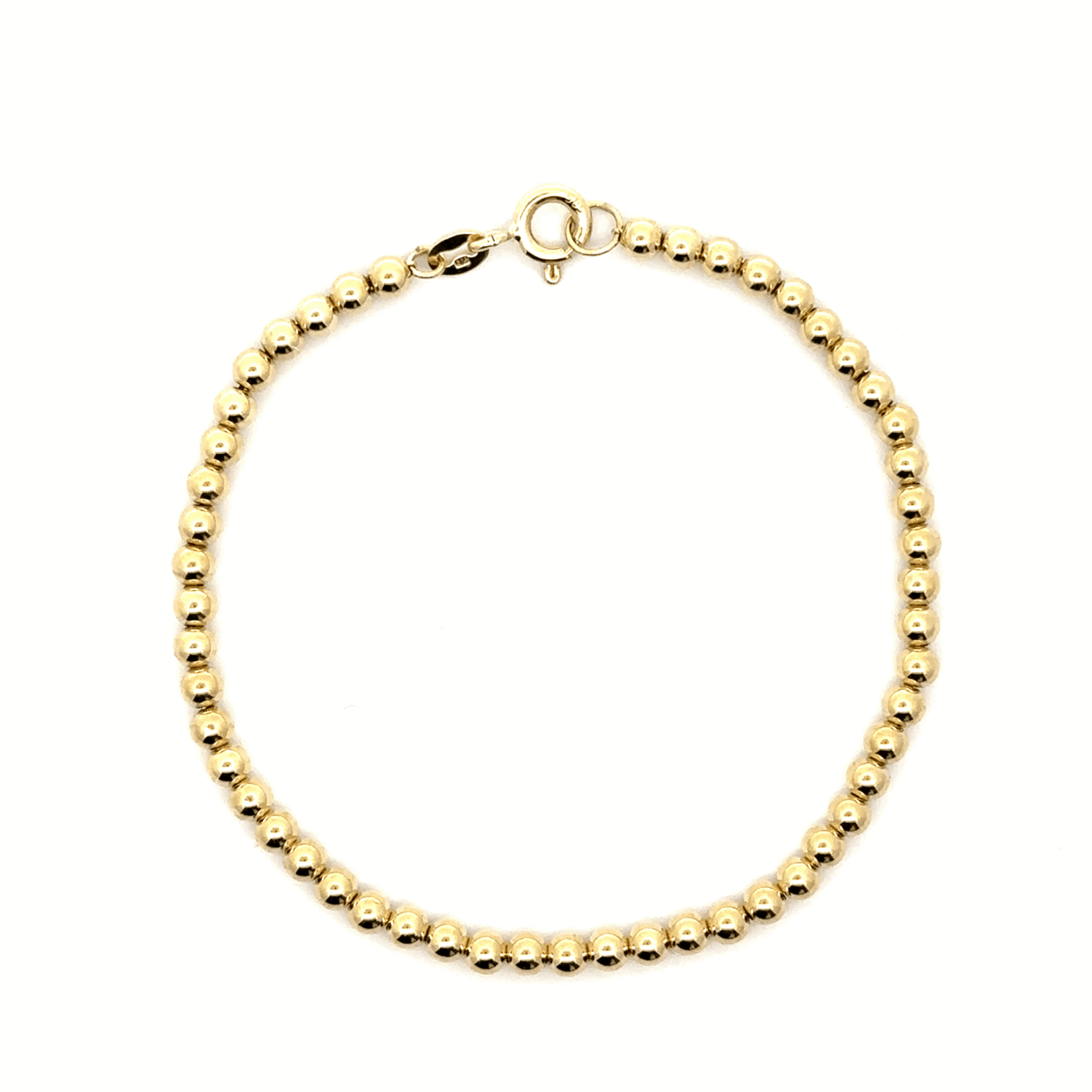 Náramek z kuliček ze 14 Kt růžového zlata na řetízku. Rozměry kuliček: 3 mm. Na vaše přání je možné zvolit i jiné barevné kombinace kuliček (připište do poznámky v objednávce).