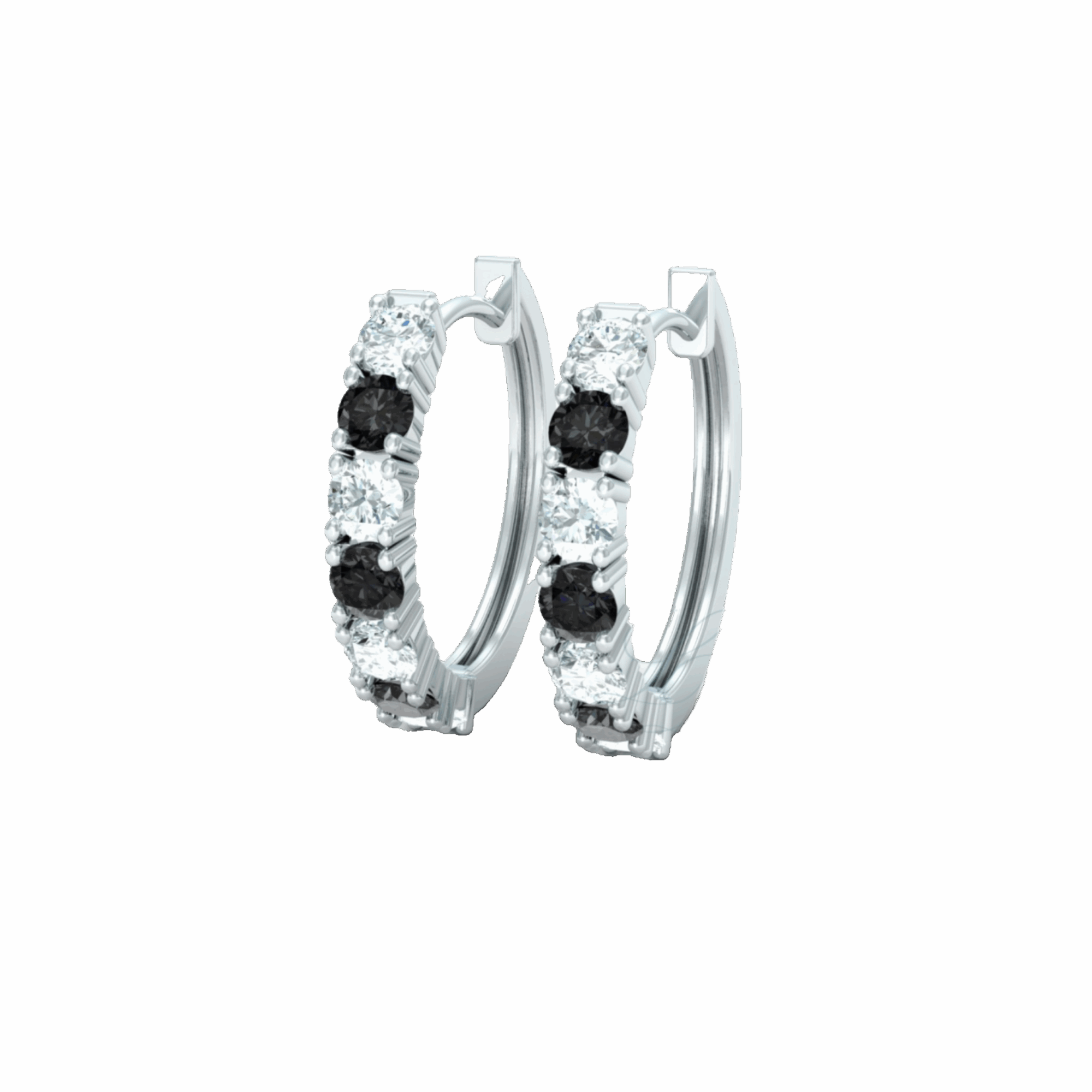 | Náušnice ze 14 Kt bílého zlata s černými a přírodními diamanty. | |
