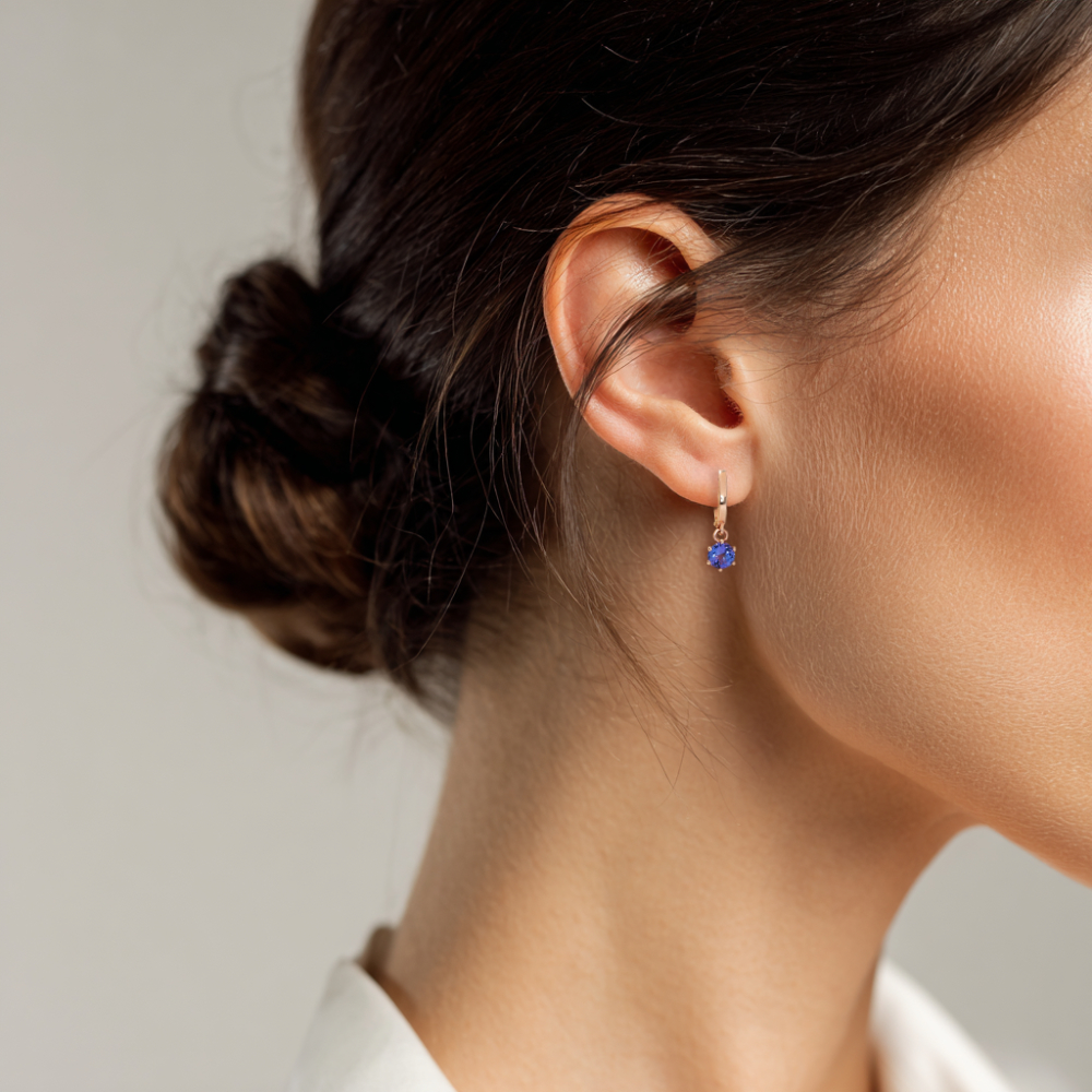 Náušnice ze 14 Kt růžového zlata s přírodními tanzanity.