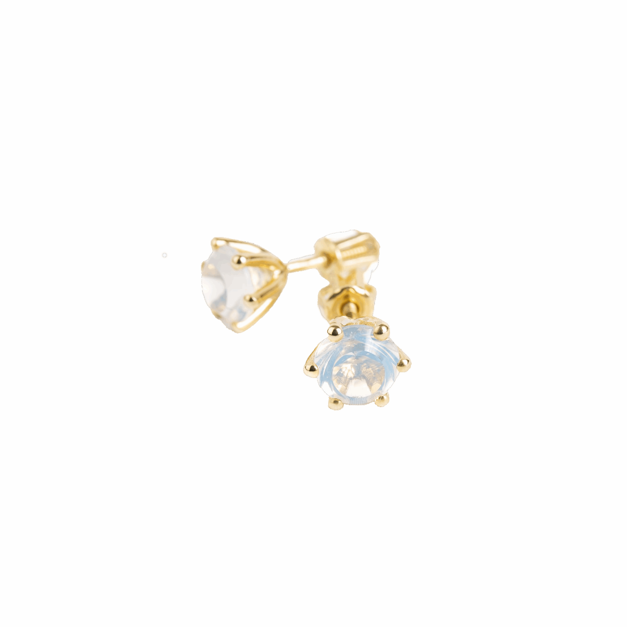 Náušnice s Ice opálem zasazené do 14 Kt žlutého zlata v šesti krapnách s centrálním kamenem ve fasetovaném brusu od Yophine.