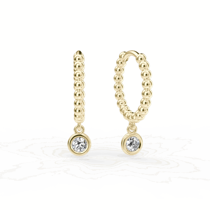 Náušnice Bubbles Hoops Button z kuličkového 14 Kt žlutého zlata s buttonem s bílým diamantem.