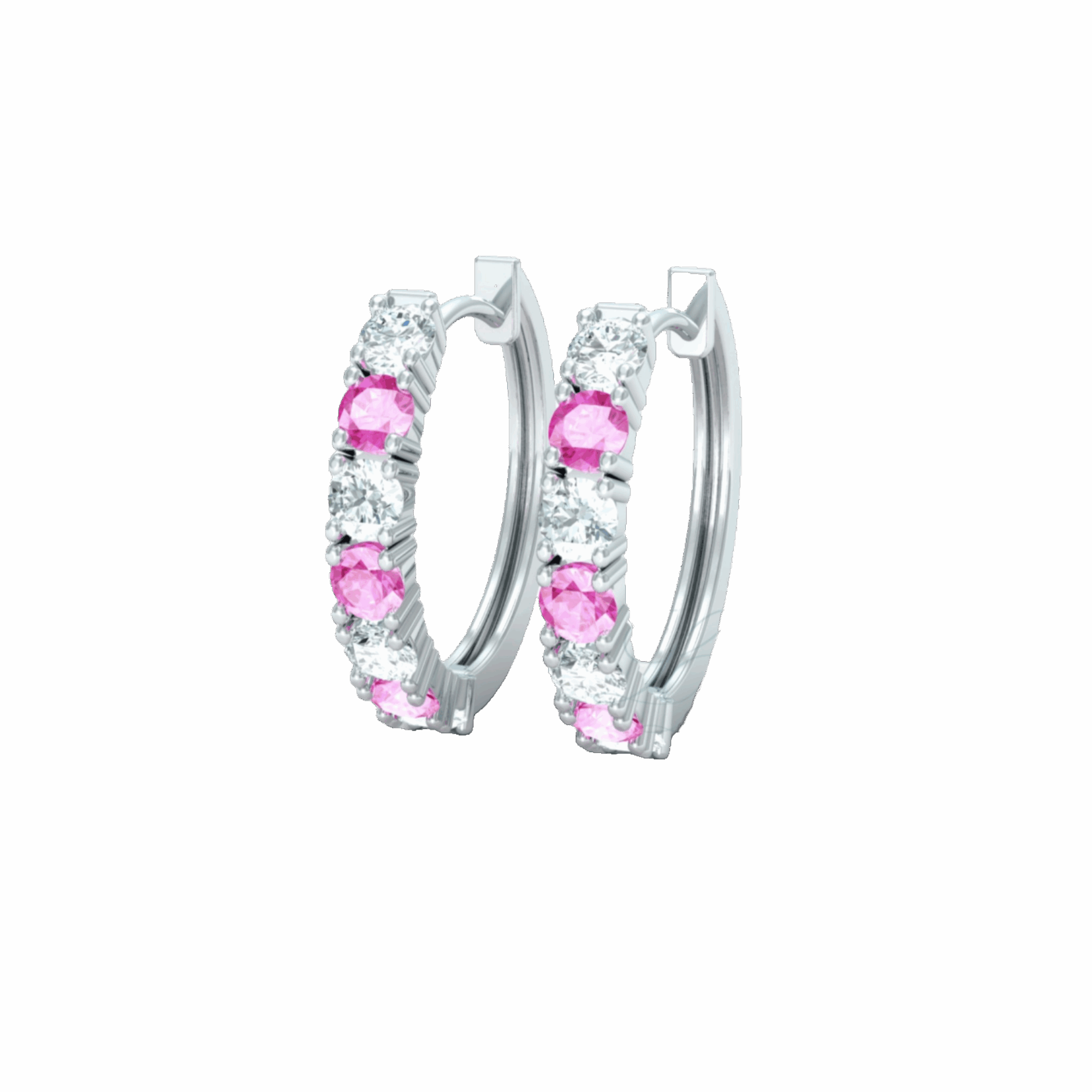 | Náušnice ze 14 Kt bílého zlata s růžovými safíry a přírodními diamanty. | |