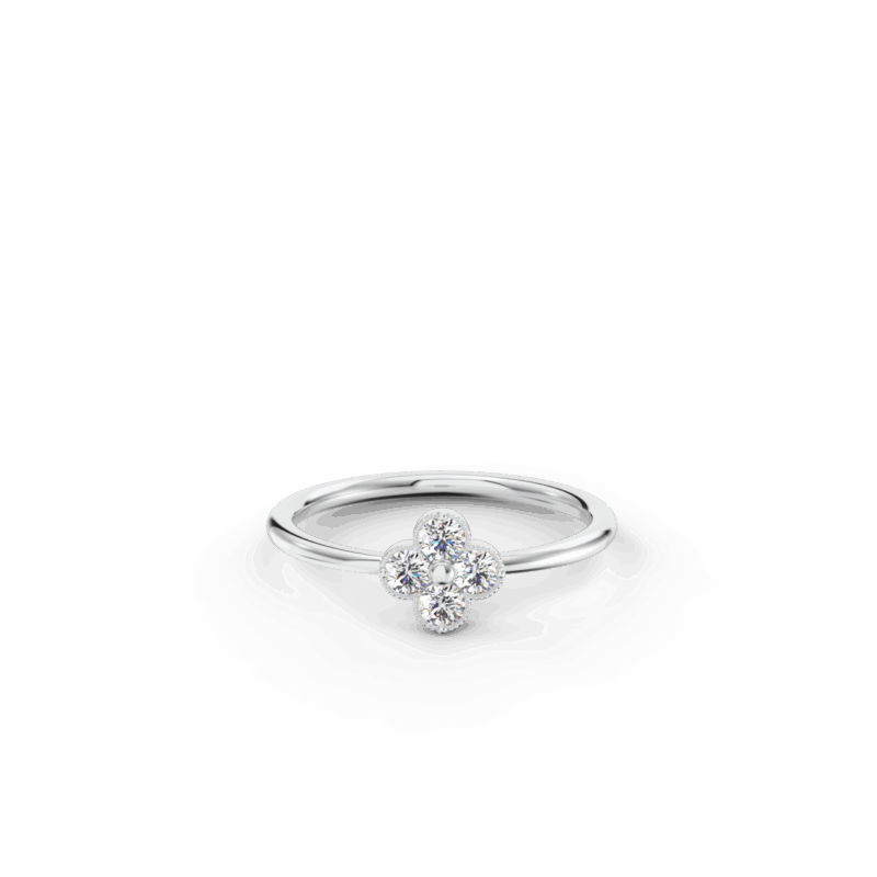 | Zásnubní prsten ze 14 Kt bílého zlata v romantickém stylu s bílými diamanty. |