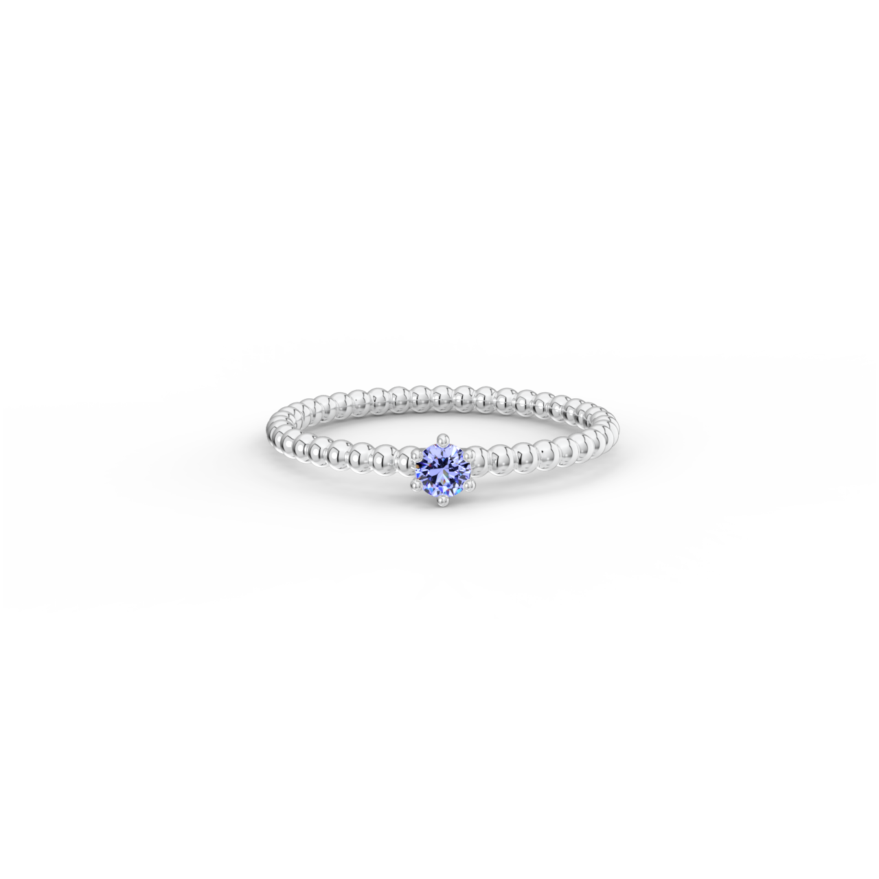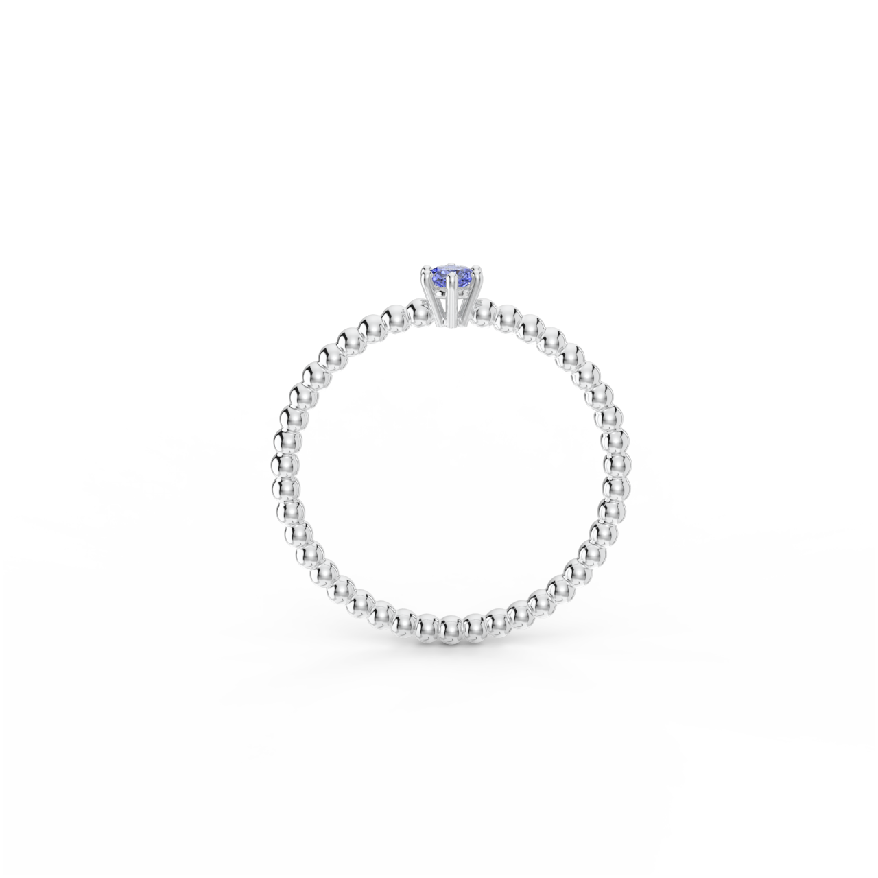 | Prsten z kuličkového 14 Kt bílého zlata s tanzanitem o velikosti 3 mm. |
