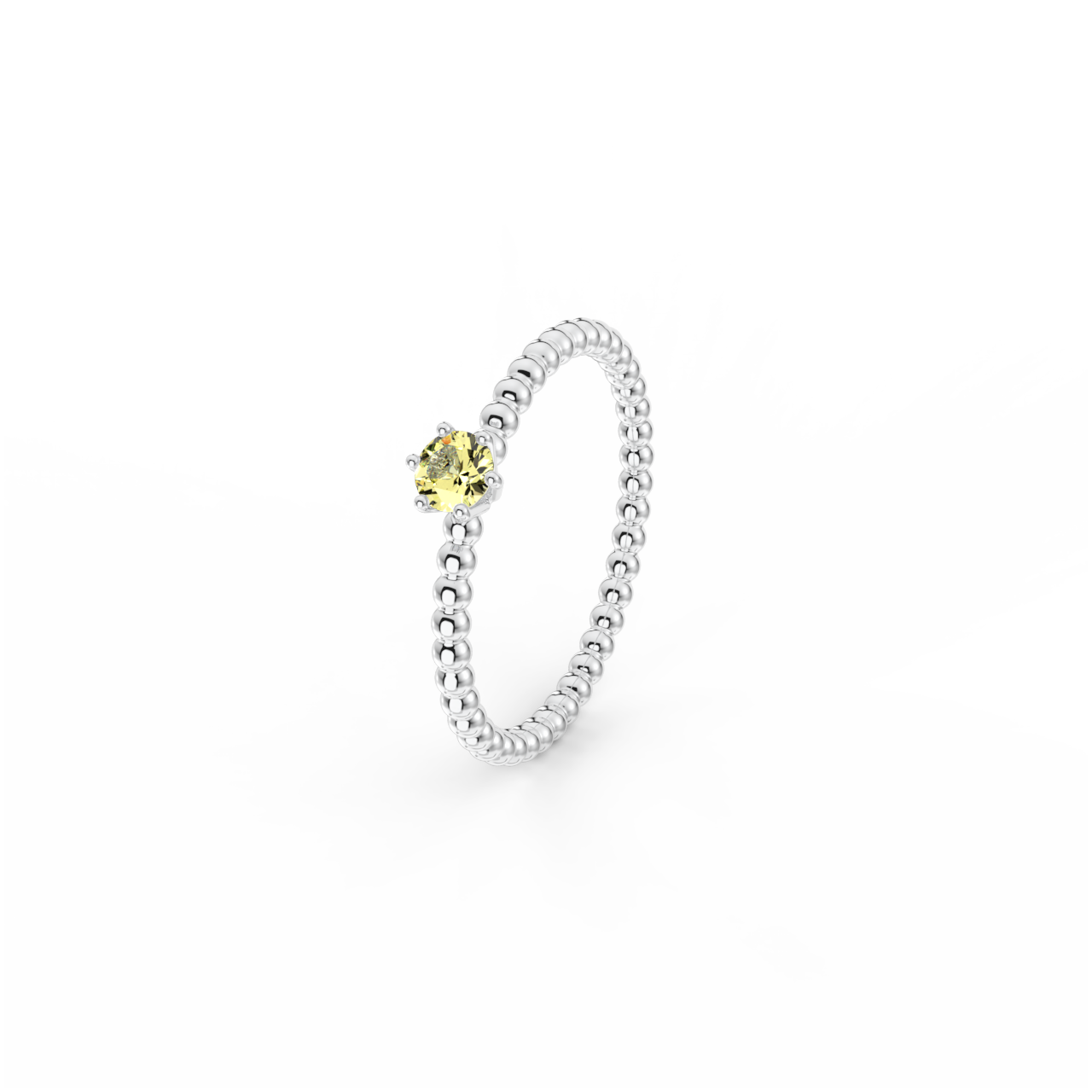 | Prsten z kuličkového 14 Kt bílého zlata se žlutým safírem o velikosti 3,5 mm. |