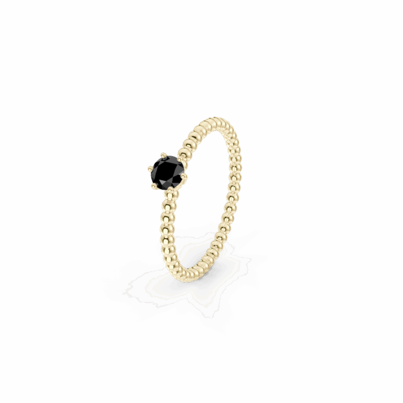 | Prsten z kuličkového 14 Kt žlutého zlata s černým diamantem o velikosti 4 mm. |