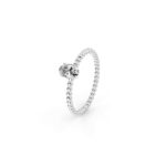 | Prsten z kuličkového 14 Kt bílého zlata s oválným diamantem o velikosti 6 x 4 mm. |