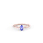 | Prsten z kuličkového 14 Kt růžového zlata s oválným tanzanitem o velikosti 6 x 4 mm. |